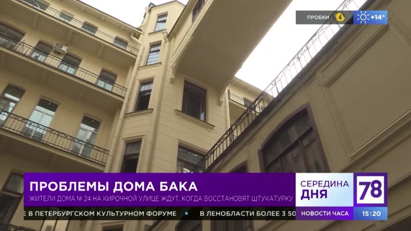 Видеозапись «Проблемы Дома Бака»: Жители Дома Бака торопят Фонд капитального ремонта с восстановлением фасада. Штукатурка осыпалась почти год назад.. С тех пор строители так и не приступили к работам. Петербуржцы переживают, что с наступлением холодов сроки снова сдвинутся, и в этом случаем может пострадать не только внешний вид здания, но и сами жильцы.